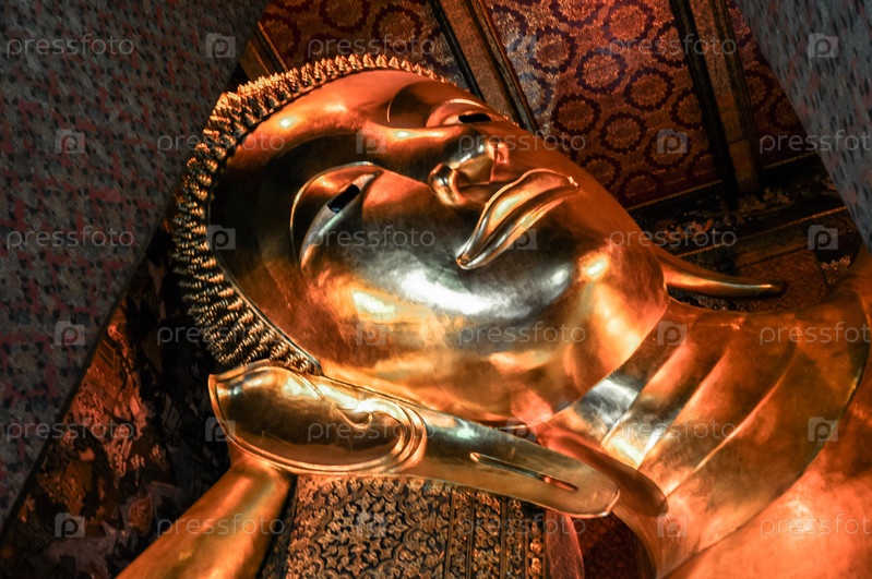 Лицо статуи Золотого Будды. Ват Пхо, Бангкок, Таиланд