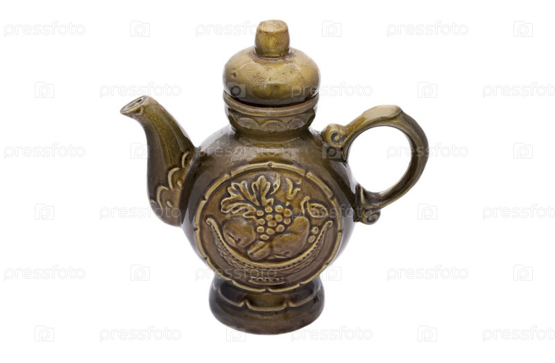Коричневый керамический чайник с украшениями