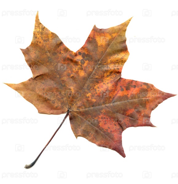 Осенний кленовый лист на белом фоне