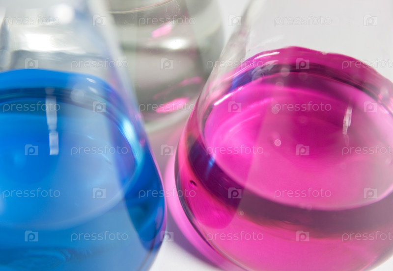 Колбы с разноцветными жидкостями