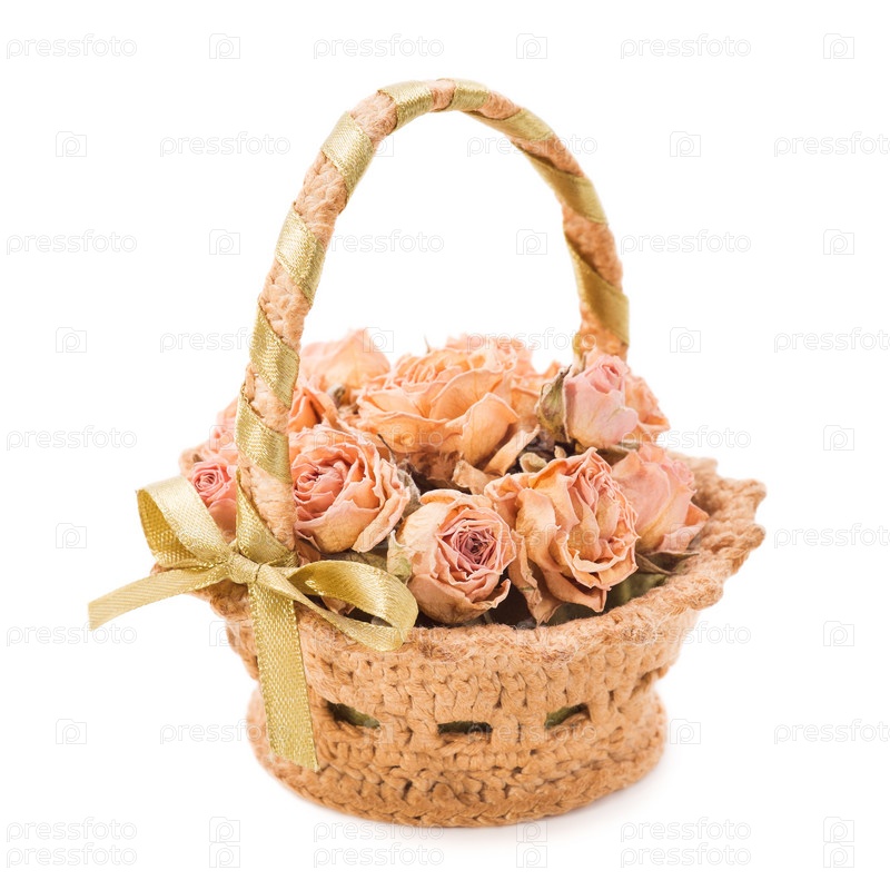 Корзина сухих роз, изолированная на белом фоне