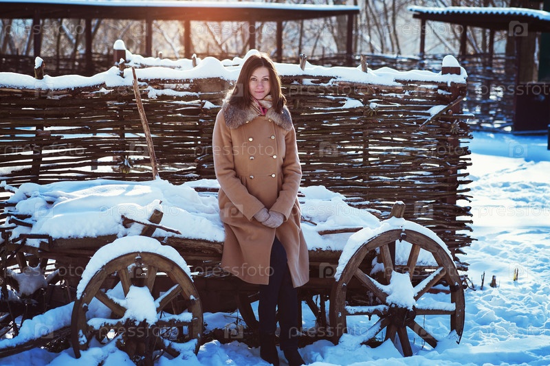 Красивая девушка позирует солнечным зимним днем