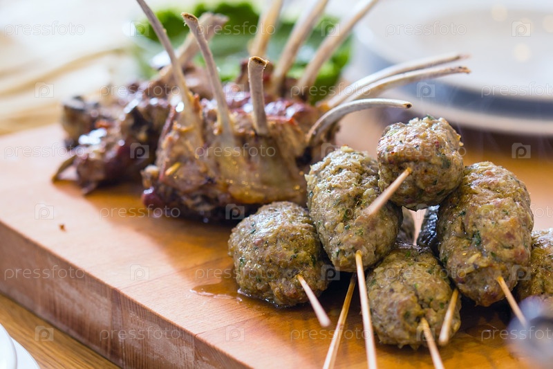 Жареная баранина на столе