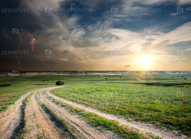 Буря над дорогой в поле