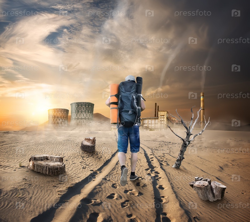 Турист в песчаной пустыне