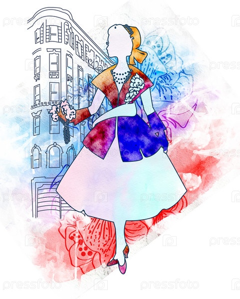 Силуэт элегантной женщины, одетой в стиле нью-лук