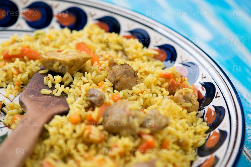 Узбекское национальное блюдо - плов, крупным планом