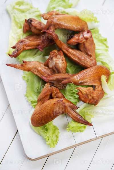 Копченые куриные крылышки на свежем салате