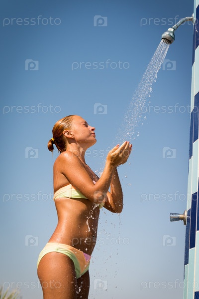 Молодая женщина принимает душ