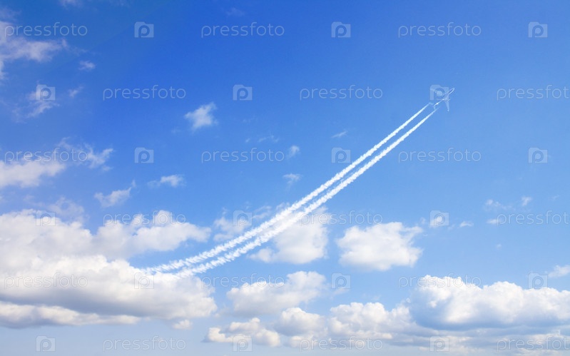 Самолет летит, оставляя след