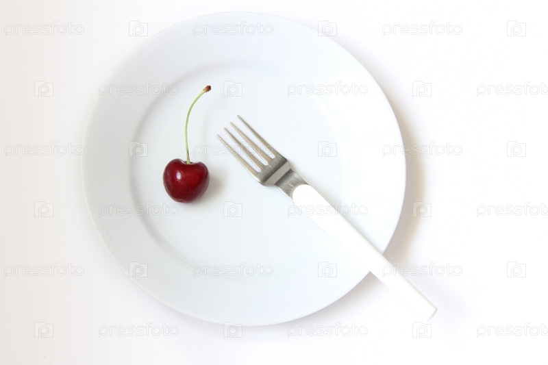 Вишня на белой тарелке