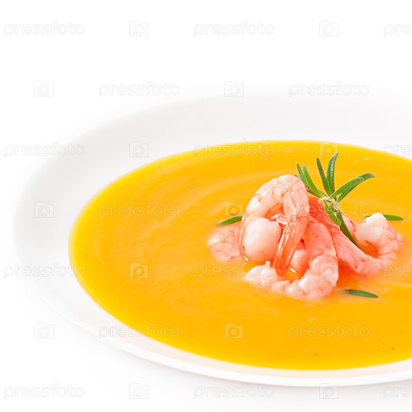 Тыквенный суп с креветками и розмарином