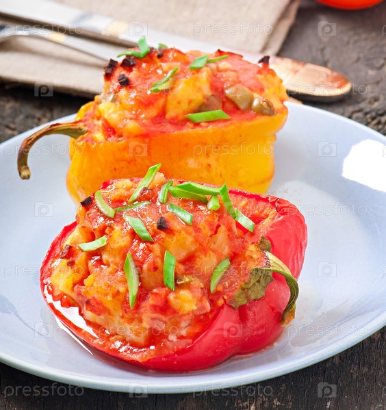Перец, фаршированный картофелем и колбасой