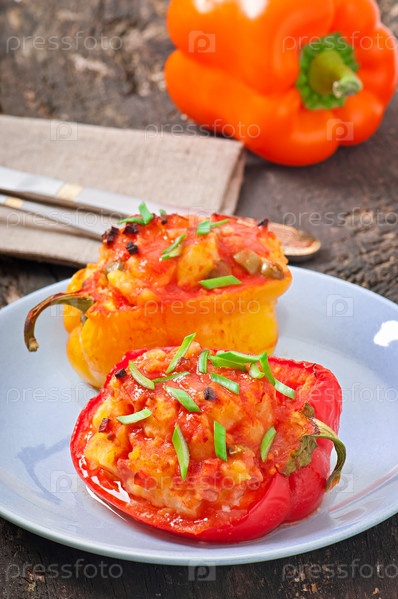 Перец, фаршированный картофелем и колбасой