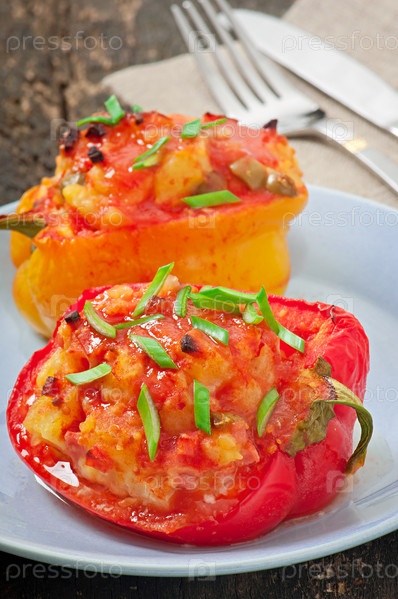 Перец, фаршированный картофелем и колбасой