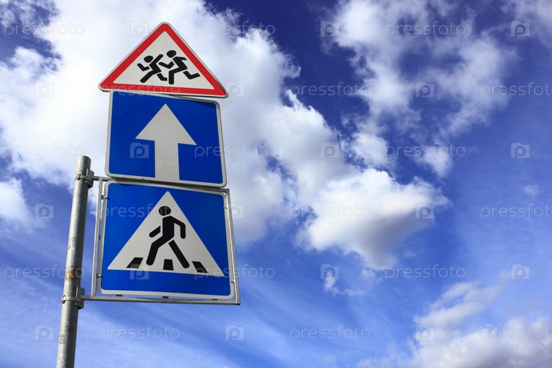 Дорожные знаки на фоне голубого неба