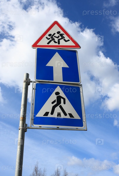 Дорожные знаки на фоне облачного неба