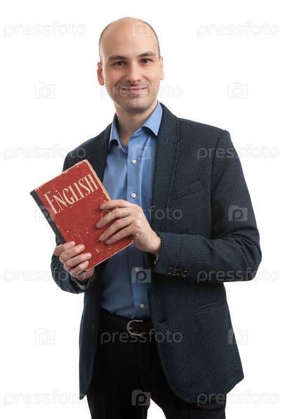 Мужчина с учебником английского языка