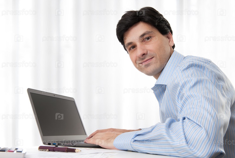 Деловой мужчина работает на ноутбуке