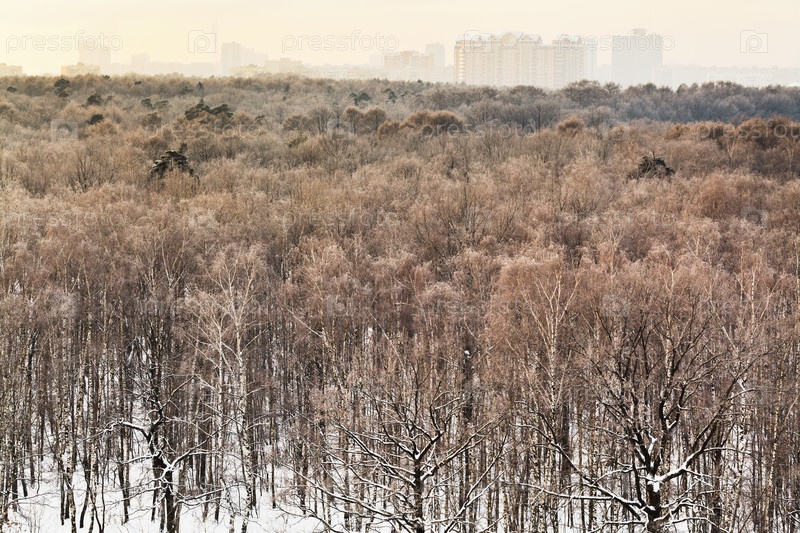 Городской парк, холодное зимнее утро