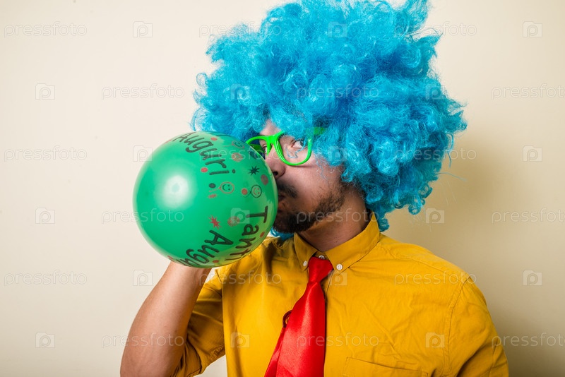 Забавный молодой человек в голубом парике