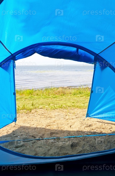 Открытый шатер и спокойное озеро