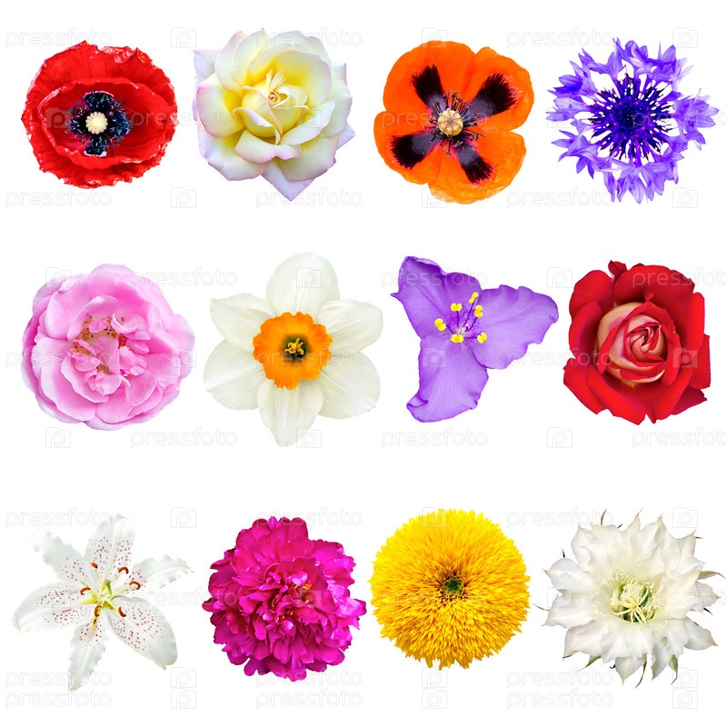 Набор красочных цветов, изолированных на белом фоне