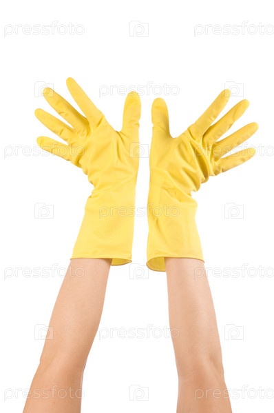 Руки в перчатках, изолированы на белом фоне