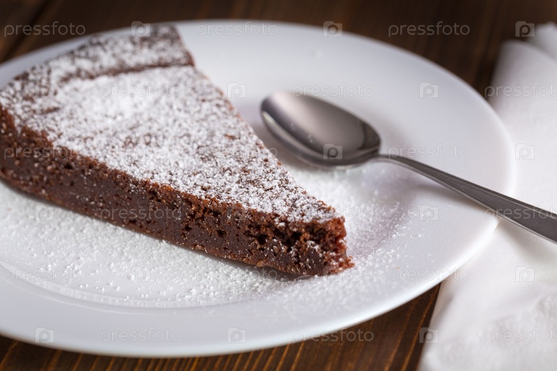 Шоколадный торт на белой тарелке