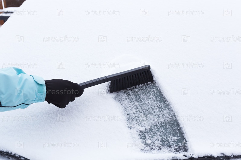 Женщина убирает снег с автомобиля