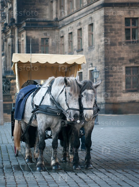 Лошади, запряженные в повозку, Дрезден, Германия