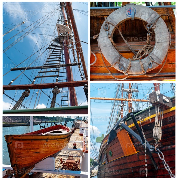 Коллаж из фрагментов парусных судов