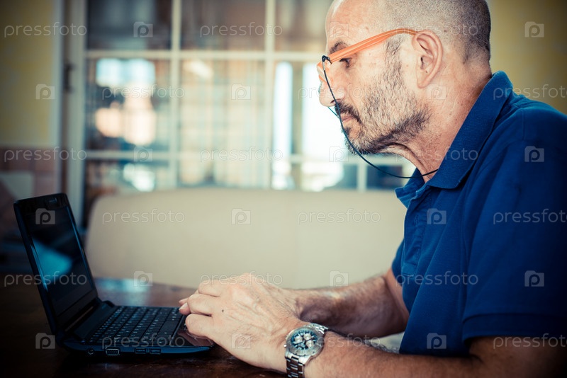 Мужчина среднего возраста использует ноутбук
