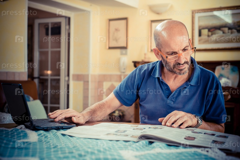 Мужчина среднего возраста использует ноутбук