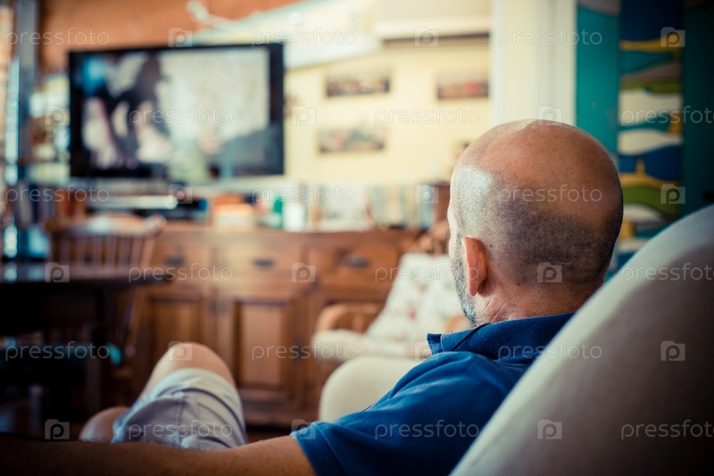 Мужчина среднего возраста смотрит телевизор