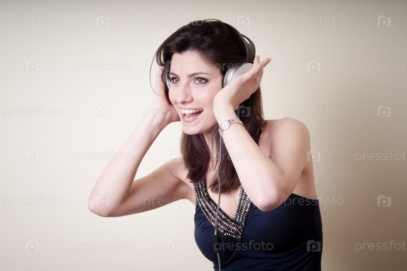 Красивая молодая женщина слушает музыку