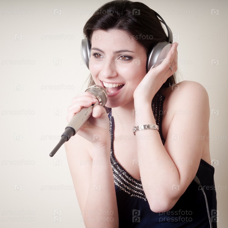 Красивая молодая женщина слушает музыку