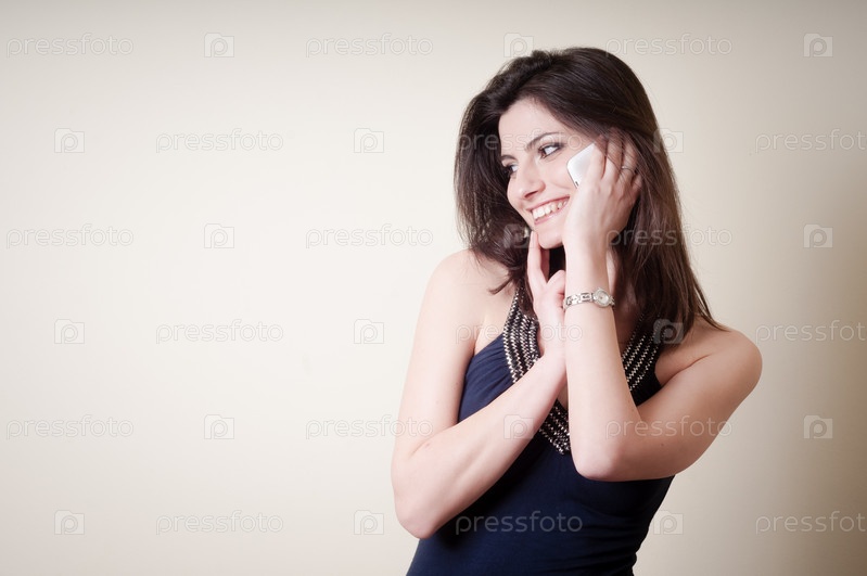 Красивая молодая женщина говорит по телефону