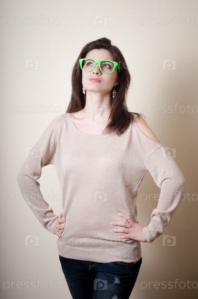Красивая молодая женщина с зелеными очками