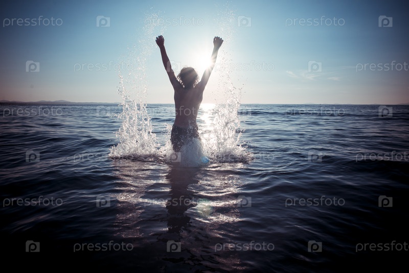 Человек в море на закате