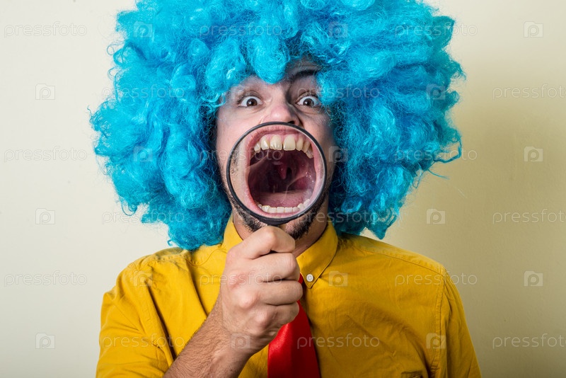 Забавный молодой человек в гсинем парике