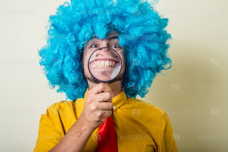 Забавный молодой человек в гсинем парике