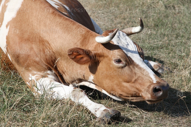 Корова отдыхает на траве