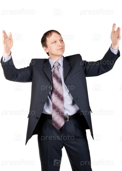 Бизнесмен держит что-то невидимое в руках