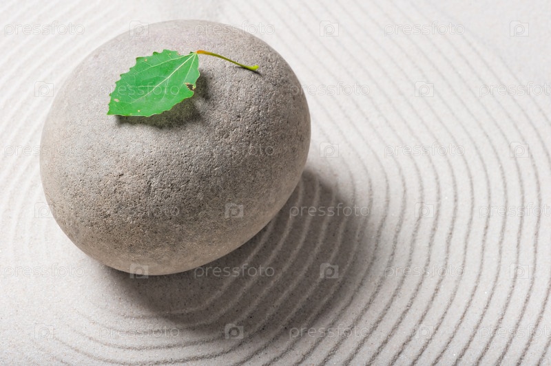 Зеленый лист на сером камне