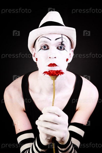 Портрет мима с красной герберой