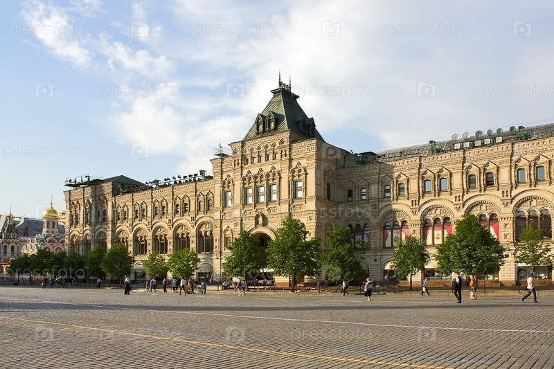 Вид фасада ГУМа на Красной площади, Москва, Россия