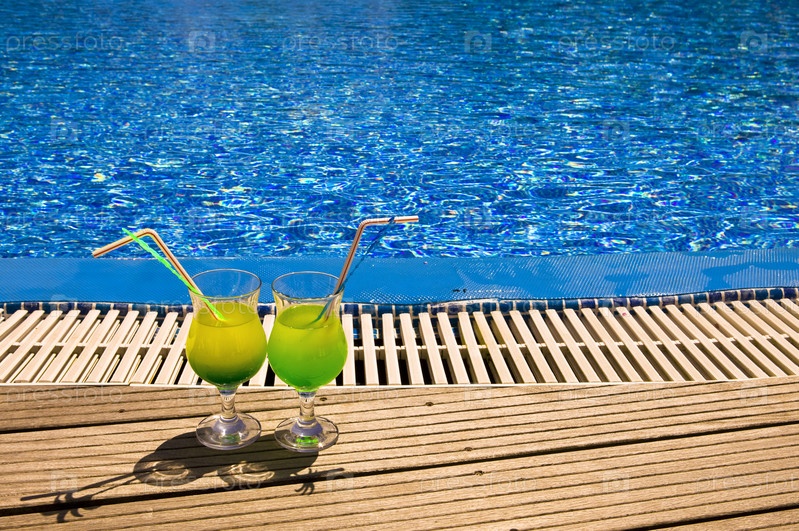 Бокалы с коктейлем на краю бассейна