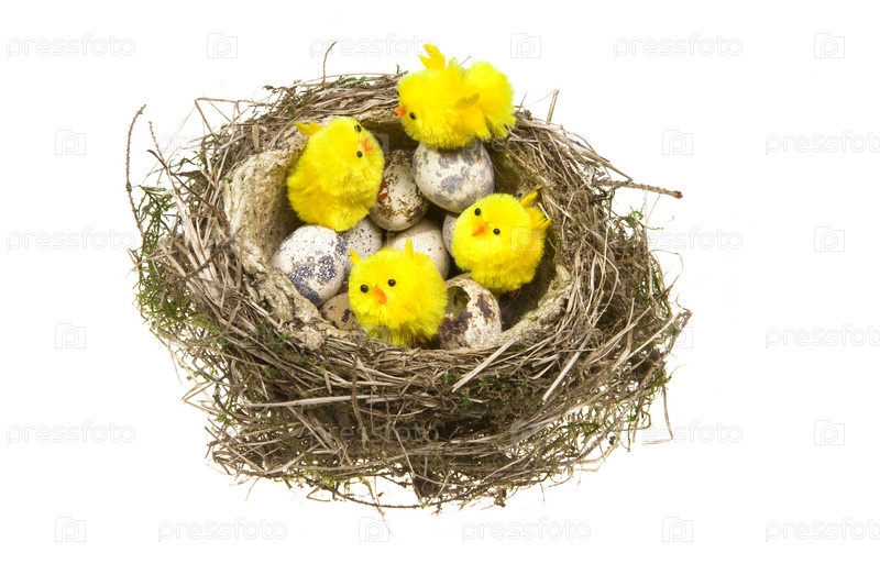 Гнездо из травы с яйцами и птенчиками