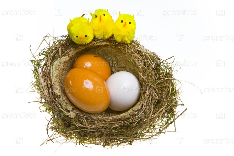 Гнездо из травы с яйцами и птенчиками
